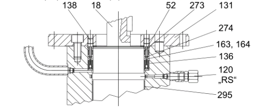 3??级密封装置由?1.??弹簧预压的?PTFE?U??型密封?(136)??和能进一步旋紧的螺栓(138)?,?2.?在操纵轴(18)?上,隔离圈(273)??和下隔离圈(274)?之间带轴环的,可以由缸体螺栓进一步拧紧的防火密封?(52)??,?3.??两个由下隔离圈(274)?的?夹紧的?O??型圈?(?163,164)?组成。